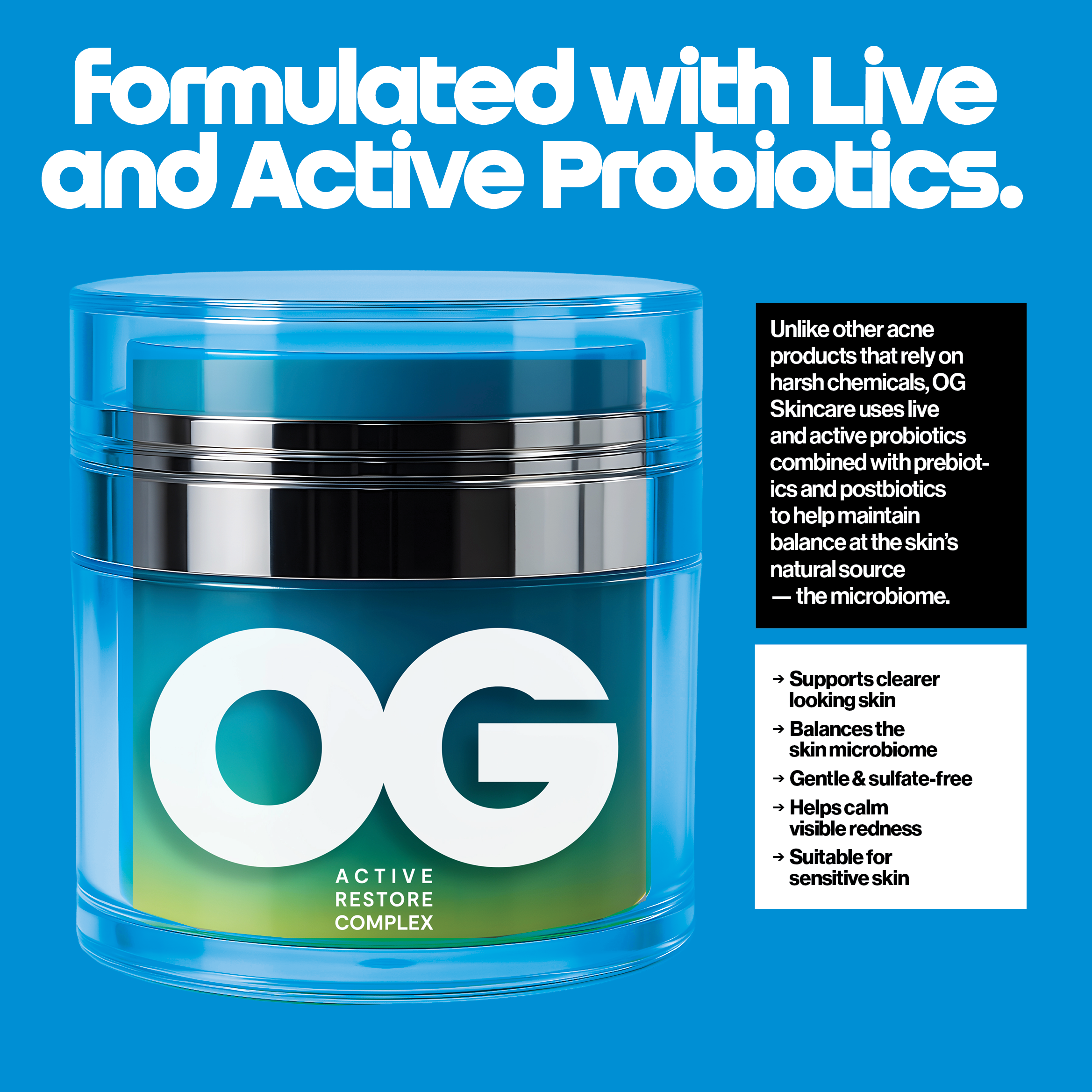 Think of it as your skin’s natural reset. Powered by live probiotics. Clearer, calmer, glowier skin starts now.